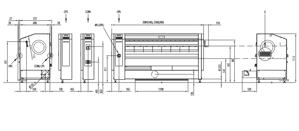 Σιδερωτήριο ρούχων θερμαινόμενου κυλίνδρου Επαγγελματικό, με κύλινδρο πλάτους 208εκ και διάμετρο Ø 32εκ. l Θέρμανση: ηλεκτρικό με αντιστάσεις 27,9kw  ή αέριο 30kw  l Δυνατότητα σιδερώματος ιματισμού έως 70 κιλά/ώρα l Εμπρόσθιας εξόδου ιματισμού l Ανθεκτικοί ιμάντες σιδερώματος Meta Aramid για μεγαλύτερη αντοχή στη θερμοκρασία l Εξαιρετικά βαρύ ρολό πρέσας για σιδέρωμα υψηλής ποιότητας l Τεχνολογία SENSOPEED με αυτόματη ρύθμιση ταχύτητας σιδερώματος ανάλογα με την υπολειπόμενη υγρασία l Εύχρηστο χειριστήριο με κουμπιά και  μικροεπεξεργαστή MCX l Κινητήρας ελεγχόμενης συχνότητας l  Ένδειξη ταχύτητας και θερμοκρασίας σιδερώματος l  Σύστημα ελέγχου υπερθέρμανσης (OCS) με 3 αισθητήρες θερμοκρασίας l Αυτόματη ψύξη l Ρυθμιζόμενο πτερύγιο εξάτμισης l Προστασία δαχτύλων και κουμπί έκτακτης ανάγκης με κεντρικός διακόπτης σε ένα l Κατοχυρωμένο με δίπλωμα ευρεσιτεχνίας απευθείας μετάδοση κίνησης l Πιστοποιημένο σύστημα αναρρόφησης με αυτοματοποιημένη λειτουργία και μηδενική φθορά εξαρτημάτων l Δυνατότητα τοποθέτησης σε τοίχο για εξοικονόμηση χώρου l Καυστήρας προ μίγματος μεταλλικών ινών (μόνο για φυσικό αέριο)  l Εγγύηση: 3 χρόνια l Διαστάσεις:Π:250 X Β:76 X Υ:111 cm l Βάρος: Ηλεκτρικό 490Kg/Αέριο 465Kg