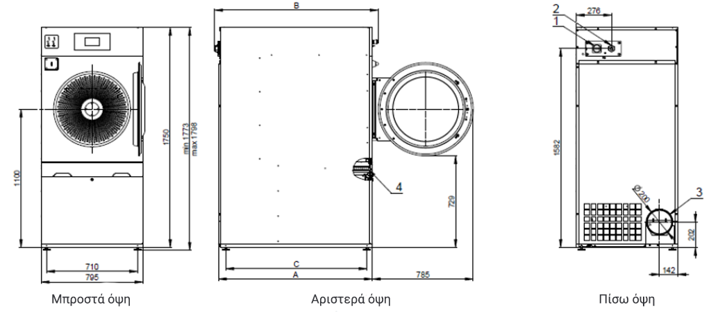 ΜοντέλοA (mm)B (mm)C (mm)