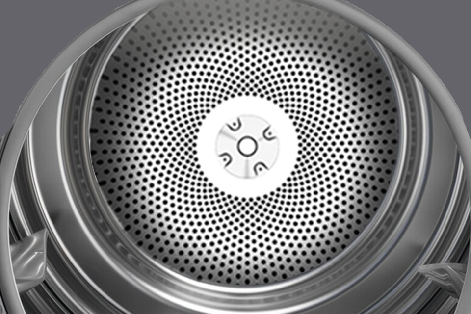 Οι διάτρητες νευρώσεις του κάδου με την τεχνολογία PowerDry ενισχύουν τη ροή αέρα, μειώνοντας σημαντικά τον χρόνο στεγνώματος και προσφέροντας στο ιματισμό μια αίσθηση φρεσκάδας και αφράτου όγκου.