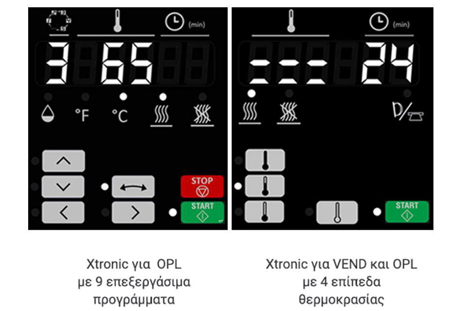 Xtronic για OPL – προηγμένος μικροεπεξεργαστής με 9 επεξεργάσιμα προγράμματα, προσφέροντας ευελιξία και εξατομίκευση στη λειτουργία των απλών στεγνωτηρίων.